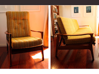 There are still a few coats of oil to go, those will be taken care of this coming week. The one thing that has confused me slightly is that up until I started I would have been pretty comfortable attributing this set to Don Furniture. As I took the couch apart I came across a label "Inspected by Airest".